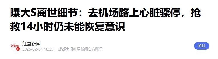 消息一经发布,瞬间引爆海内外社交平台。2񀙔日,“大S心脏骤停”话题空降微博热搜榜首,阅读量破十亿。